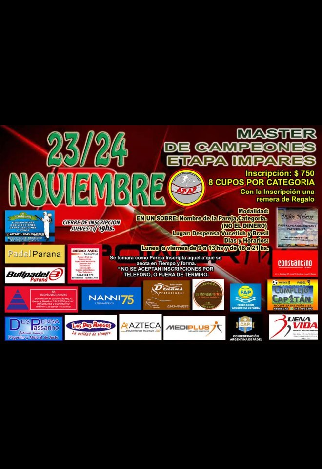»» Evento: Master Impares 2019 »» Localidad: Paraná »» Fechas: 23/11/2019 al 24/11/2019