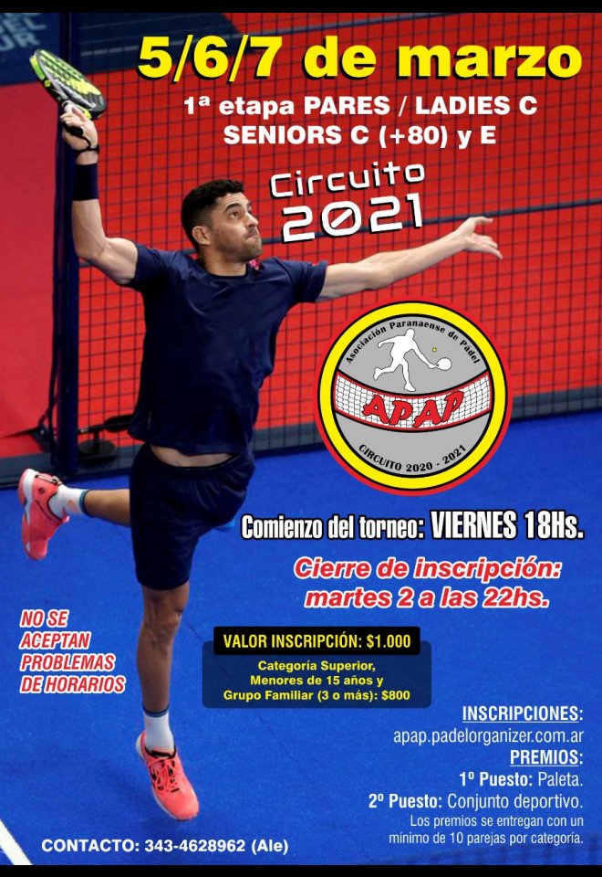 »» Evento: 1ra Etapa Pares 2021 »» Localidad: Paraná »» Fechas: 05/03/2021 al 07/03/2021
