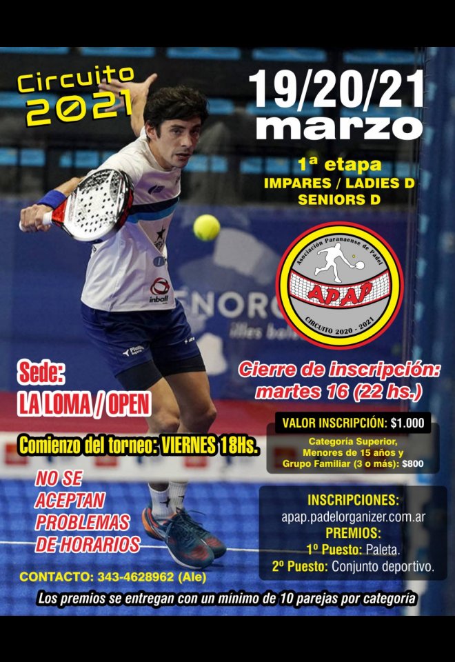 »» Evento: 1ra Etapa Impares »» Localidad: Paraná »» Fechas: 19/03/2021 al 21/03/2021